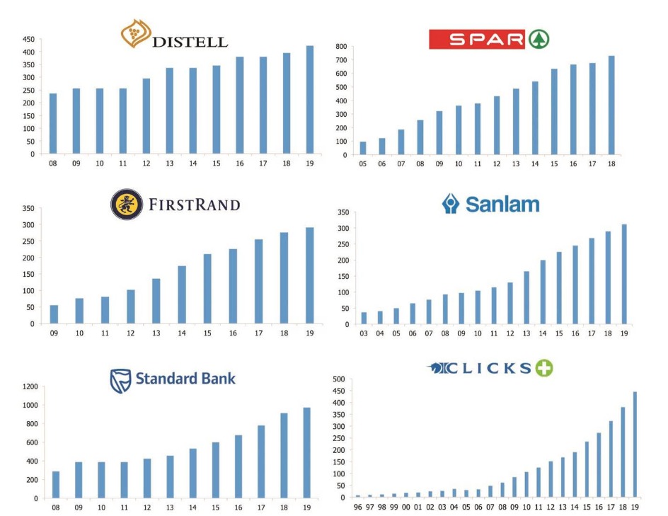 The charts below illustrate the dividend track records of some of the companies the Marriott Dividend Growth Fund currently invests in. As you can see, it pays to be the nice guy: